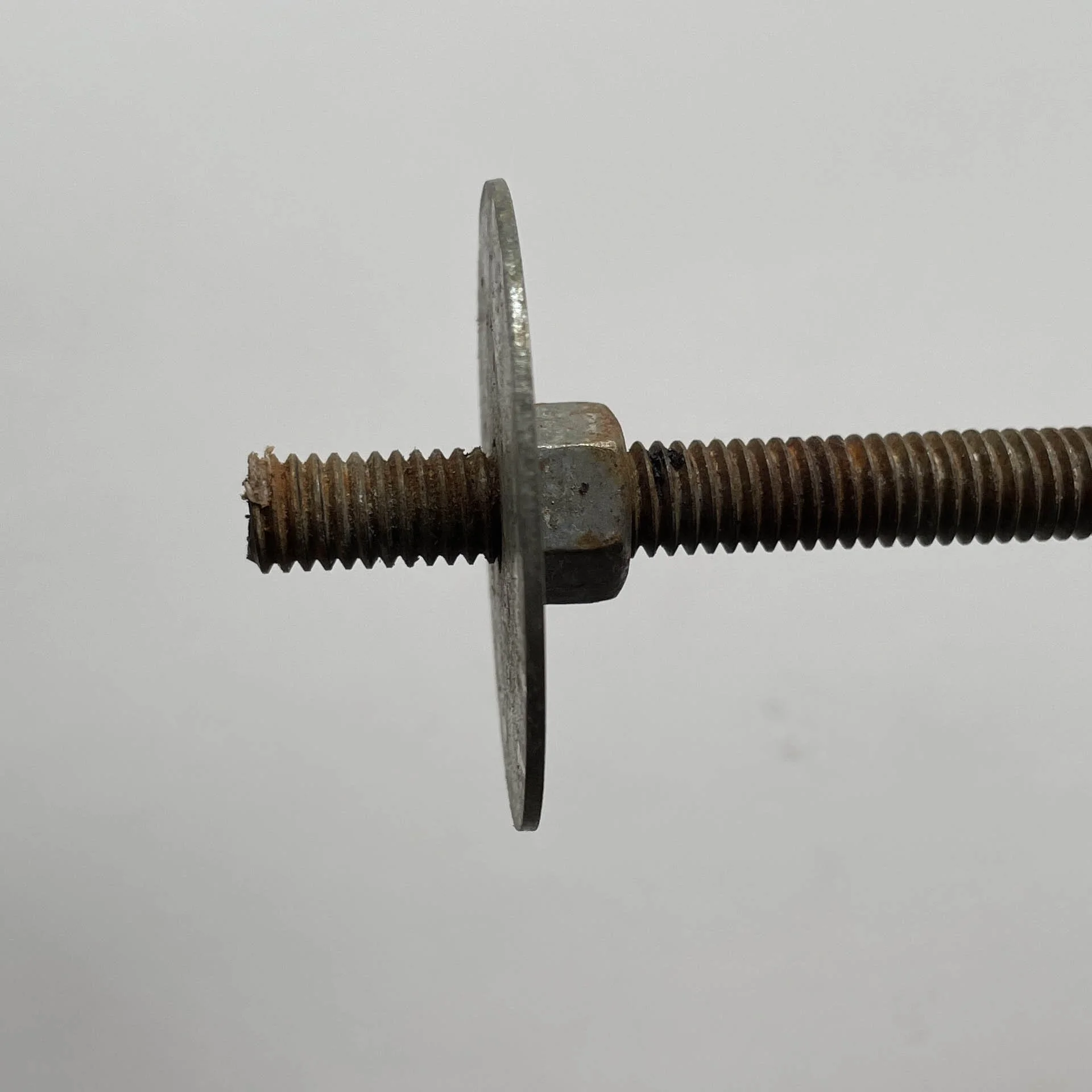 2. Thread a nut onto the rod an inch or two and add one plain washer. In this picture, I have used a regular nut, but a lock nut would be better.